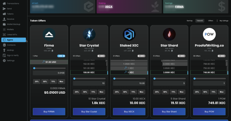 If you are new to the eCash ecosystem, you may not know that there are tokens and NFTs for sale on the Agora marketplace. Below are instructions for buying and selling tokens using Agora in Cashtab as well as the agora.cash site: